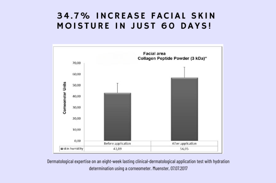Pris & Co's collagen peptides has been proven by research to increase facial skin moisture in just 60 days